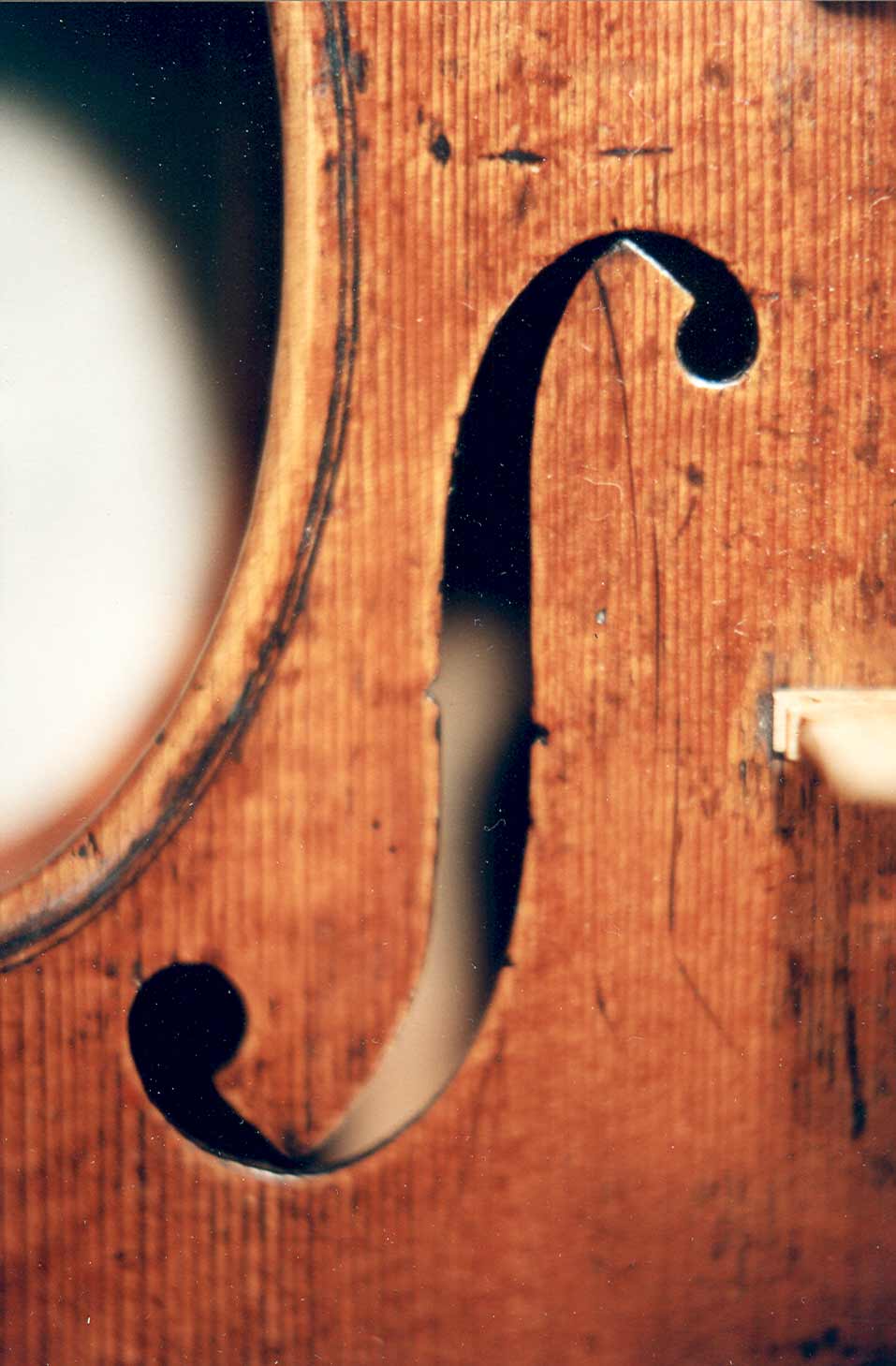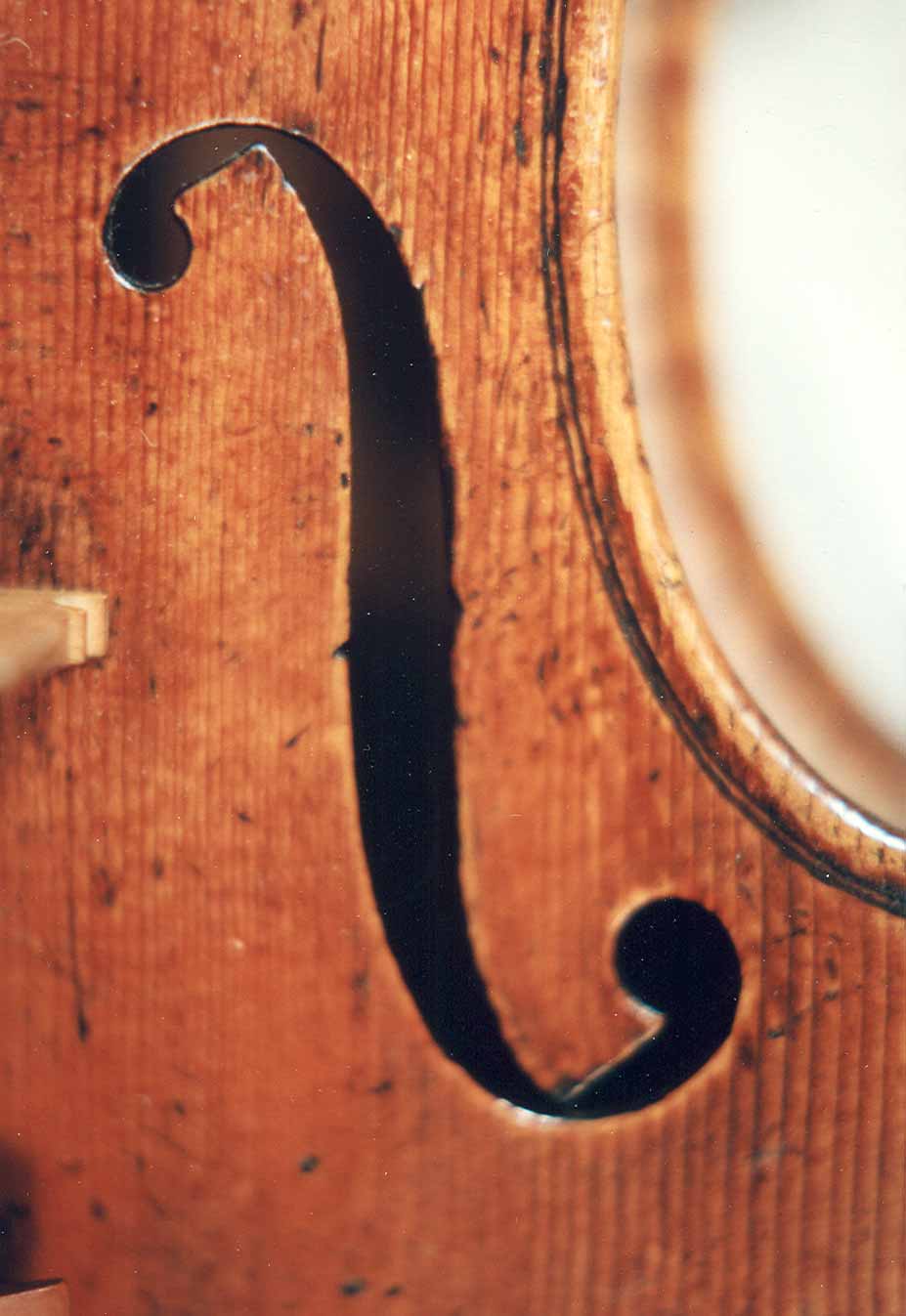 Among other alterations and repairs, the ribs were once cut down, then raised back up again. Some say too much, but I disagree. Its voice is too warm and wonderful to criticize. |