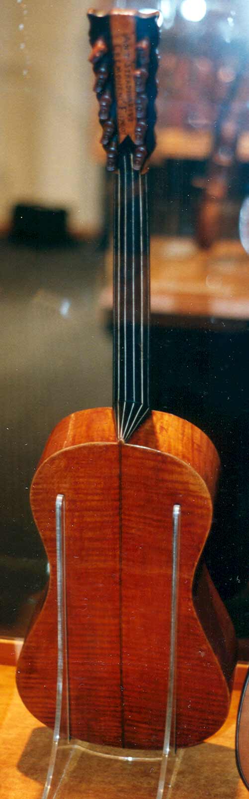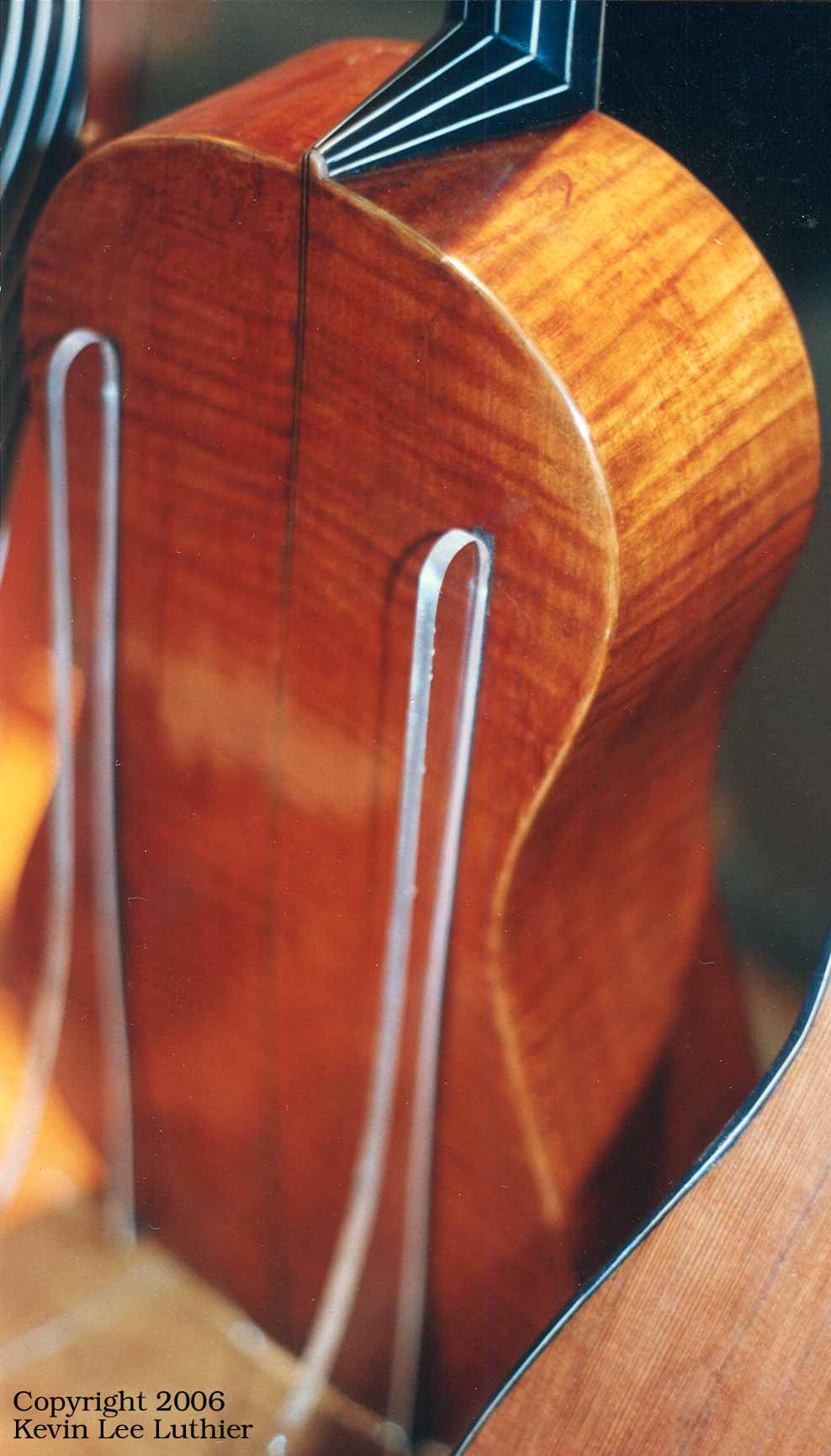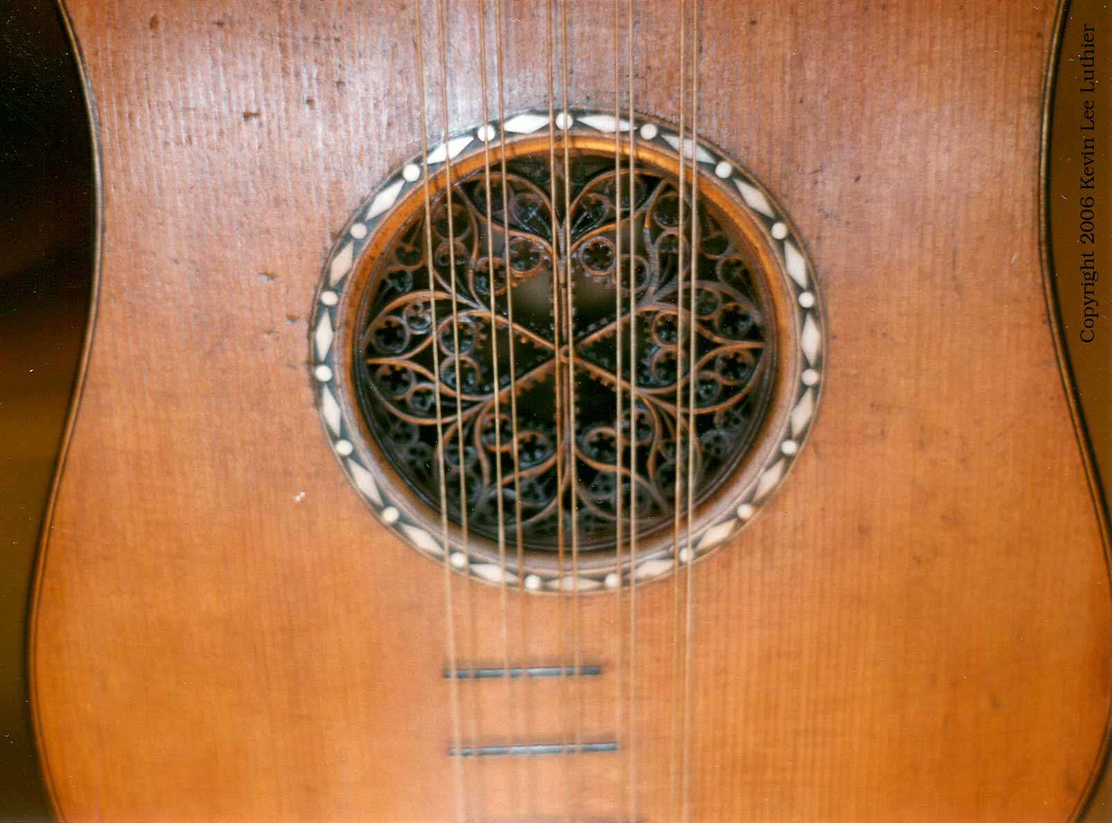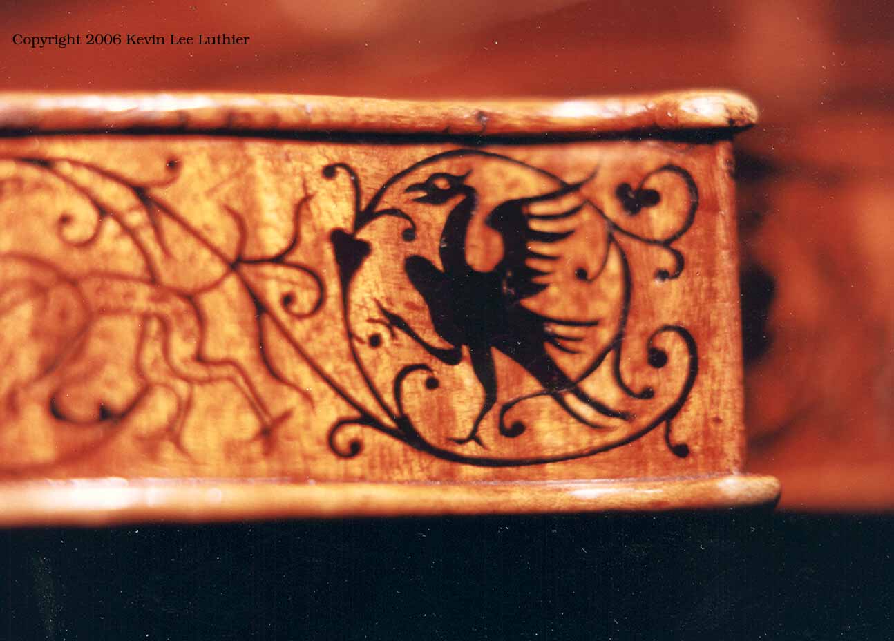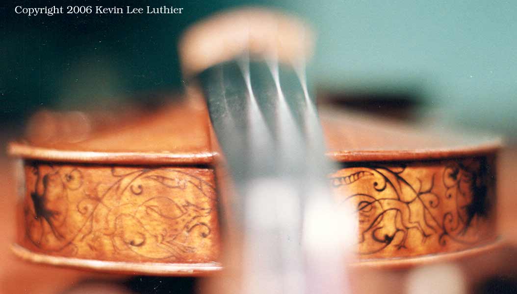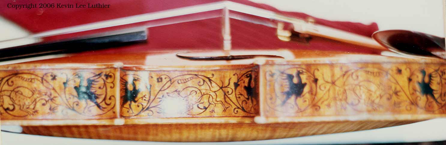 The ribs are elaborately inlaid and were made slightly thicker than his normal instruments |
