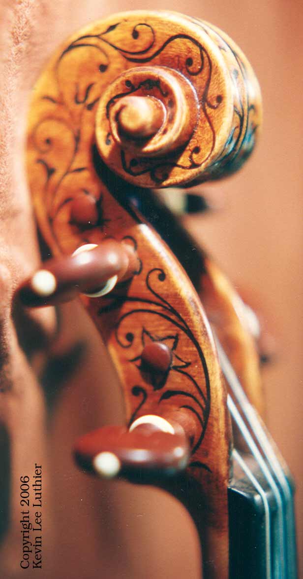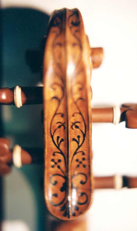 A master instrument needs to get better with age, therefore all decorations must be "in" the wood in order for them to last for the entire life of the instrument. |