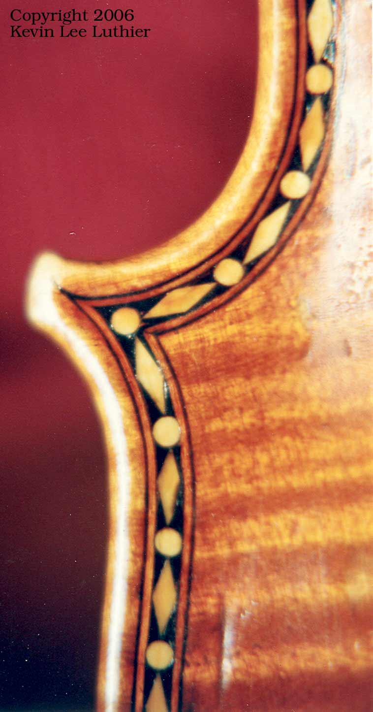Stradivari made very few inlaid instruments and always charged "dearly" for them even though some of their voices were compromised by the thicker wood necessary for the inlay work |