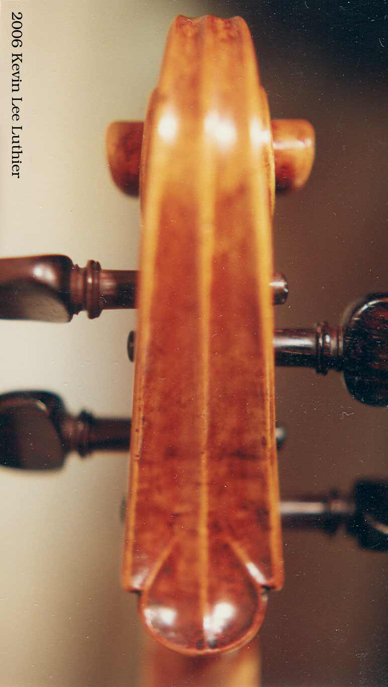 A rare cello style scroll for this late of viola, but Stradivari was not beyond "breaking the rules" for a special customer |