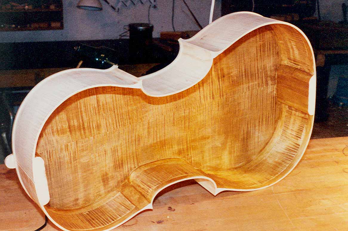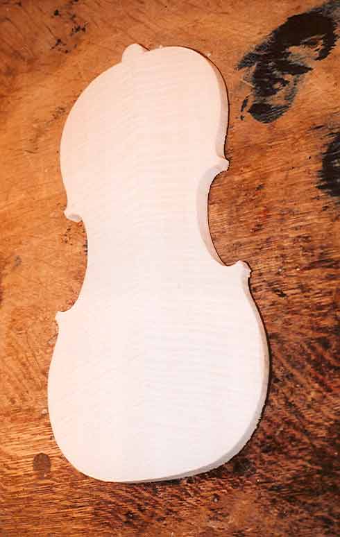 Maple and spruce; jointed and glued for the back and belly. |