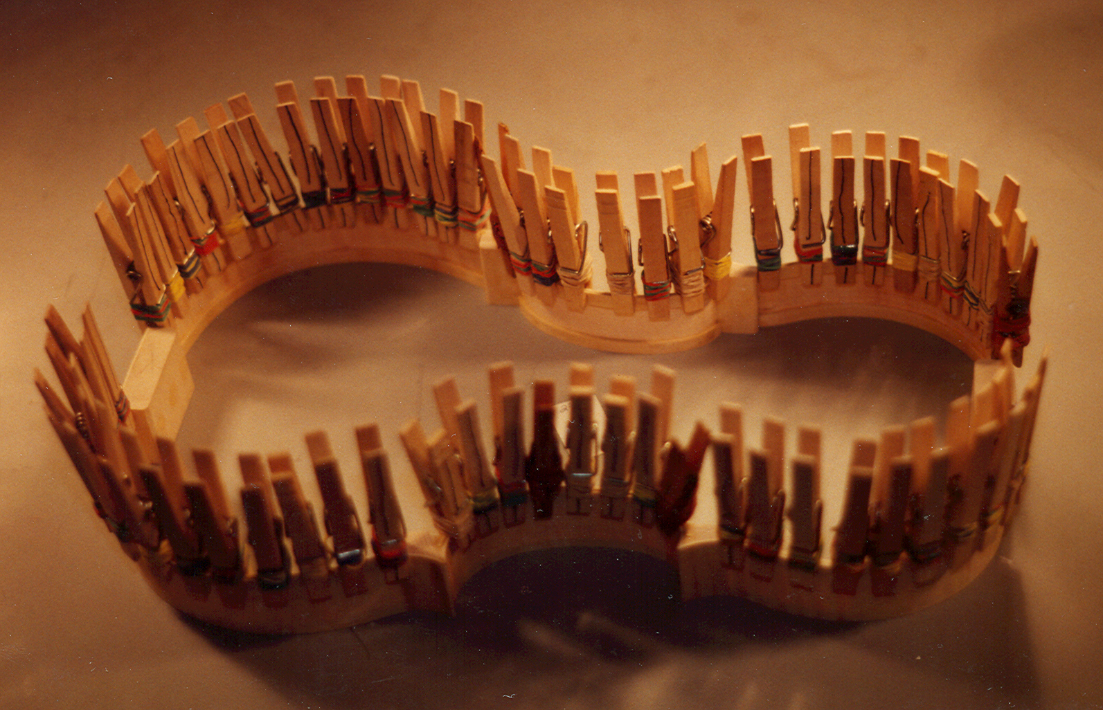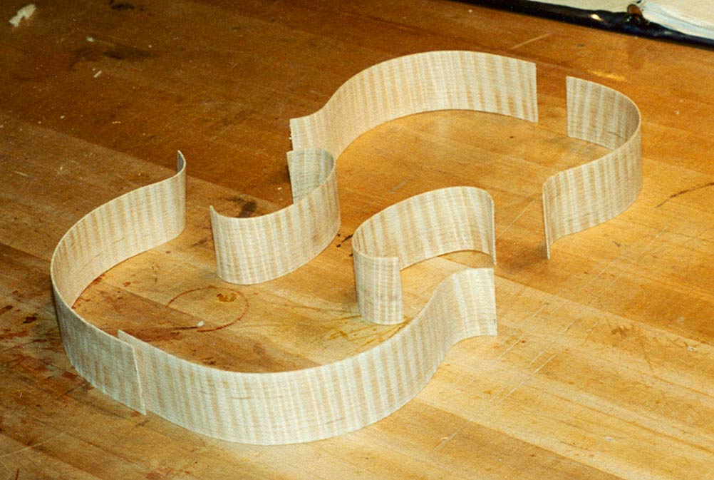 Ribs, bent to the shape of the mold and ready to be glued. |