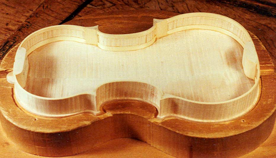 Linings are cut, scraped and bent to match the mold and ribs (belly and back). |