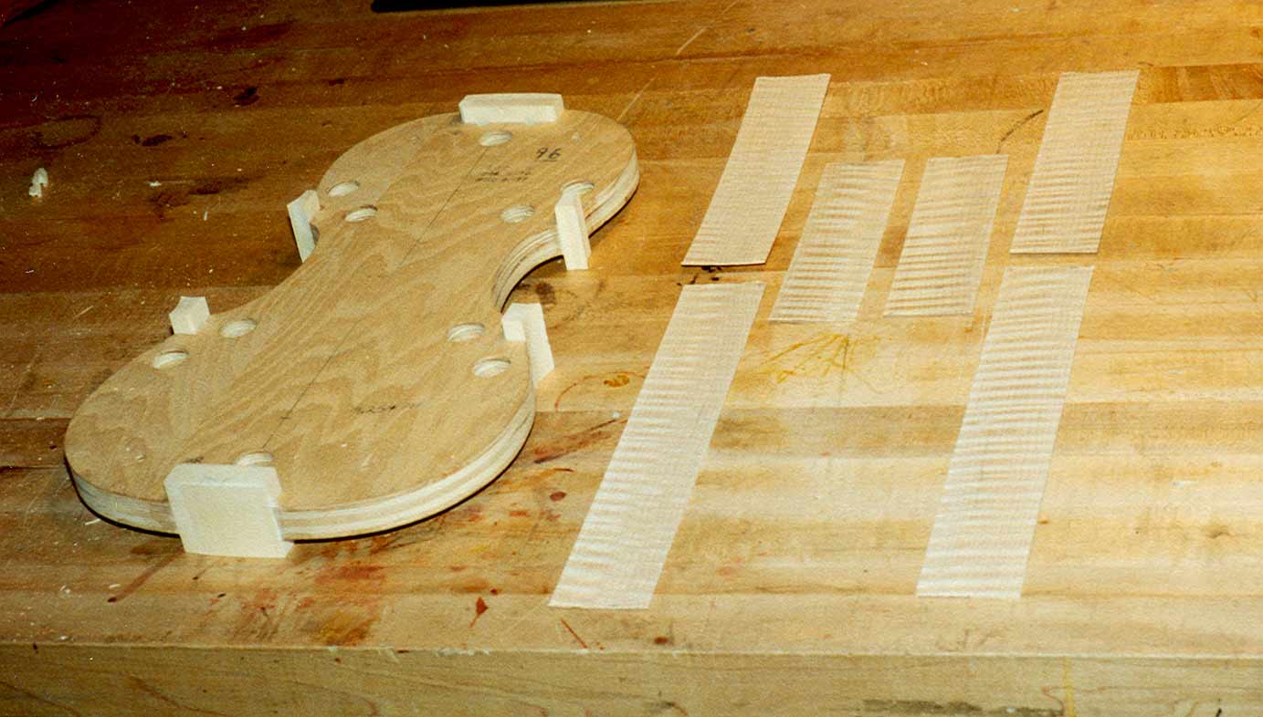 Blocks glued to mold. Ribs cut, planed and scraped to thickness |