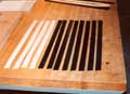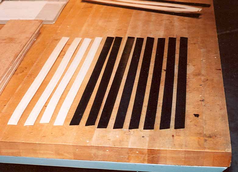 Strips of Purfling dyed and ready to glue together |